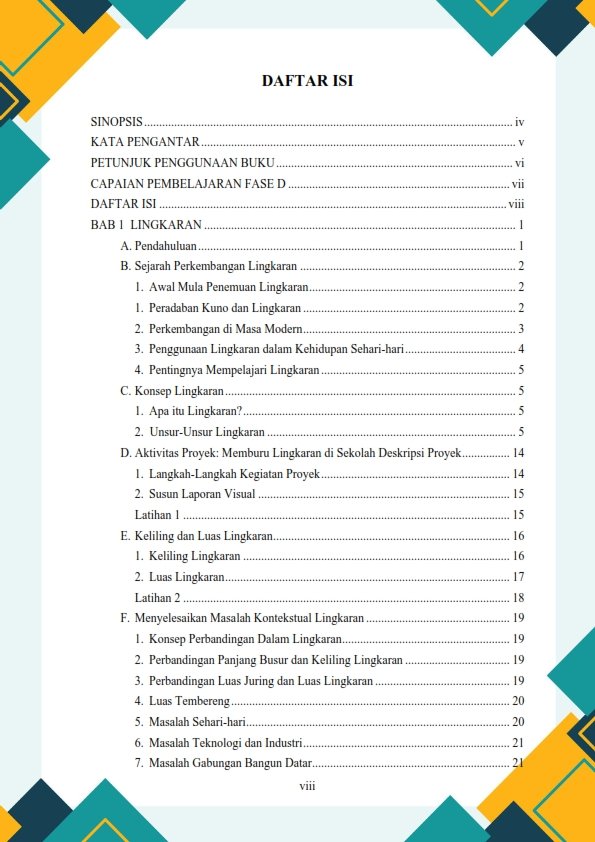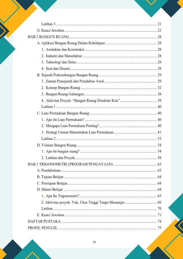 Dengan metode berbasis proyek, diharapkan buku ini dapat menjadi sumber belajar yang efektif dalam meningkatkan pemahaman matematika dan mempersiapkan siswa menghadapi tantangan pendidikan yang lebih tinggi.