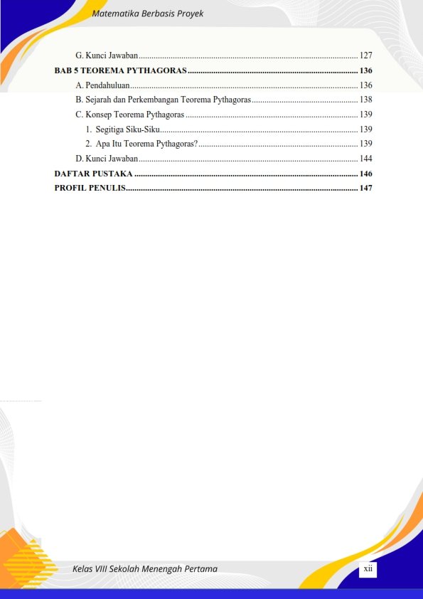 Buku ini juga dirancang untuk mempermudah siswa dalam menerapkan matematika dalam konteks dunia nyata melalui eksplorasi topik-topik yang relevan, serta mendukung pembelajaran yang lebih aktif dan efektif. Dengan pendekatan ini, diharapkan siswa tidak hanya memperoleh pengetahuan matematika, tetapi juga keterampilan yang dapat digunakan dalam kehidupan sehari-hari.