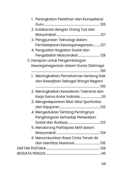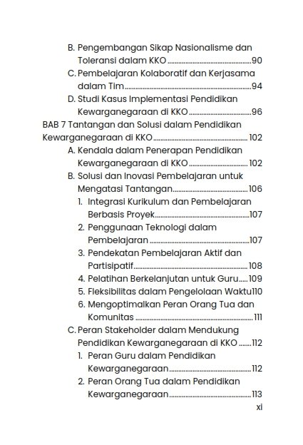 Pendekatan yang holistik, buku ini membahas berbagai aspek pendidikan kewarganegaraan yang dapat terlibat dalam kegiatan olahraga, seperti disiplin, tanggung jawab, kerja sama, dan sportivitas. Selain itu, buku ini juga menggali tantangan yang dihadapi dalam implementasi pendidikan kewarganegaraan di KKO, termasuk keterbatasan waktu, keragaman latar belakang siswa, serta kebutuhan untuk melibatkan berbagai pihak, seperti guru, orang tua, dan masyarakat.